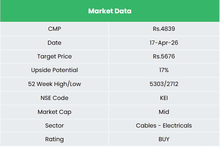 KEI Industries Limited (KEI), incorporated in 1992 and headquartered in New Delhi, is one of India’s leading manufacturers of wires and cables. Its product portfolio spans Extra-High Voltage (EHV) cables up to 400 kV, HT and LT power cables, control and instrumentation cables, specialty cables (solar, rubber, EV, fire-survival, ESP, MVCC), house and winding wires, and stainless-steel wires. The company is additionally forward integrated into EPC services for power transmission, distribution, and sub-station projects.