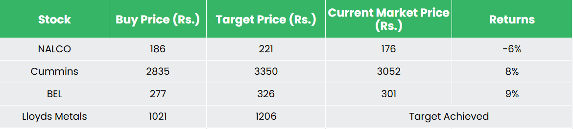 Recap of our previous recommendations (As on 28 March 2025)