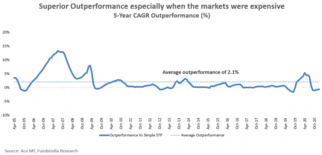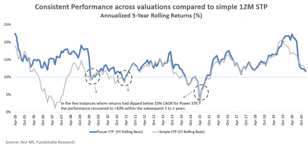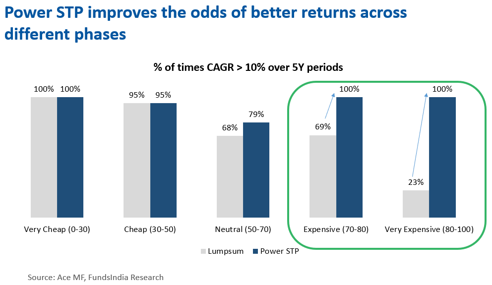 Thus, the Power STP is an ‘all-weather’ solution given its valuation-driven approach and you can use it anytime to deploy large lumpsum money into equities.