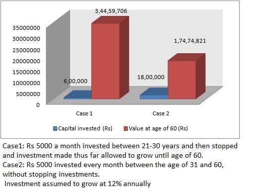 Just see the  graph above to know what difference it would have made had you started investing early.