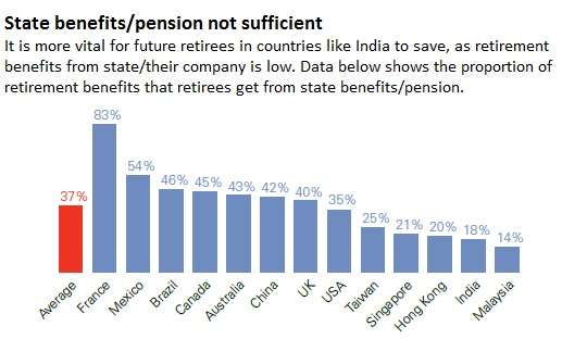•  ‘I will not live for more than 15 years after retirement’:  In HSBC’s survey, most emerging country respondents appear to underestimate their life span. With increasing medical technology and reach, chances are that you will outlive your previous generation. So do not underestimate your life span while planning.