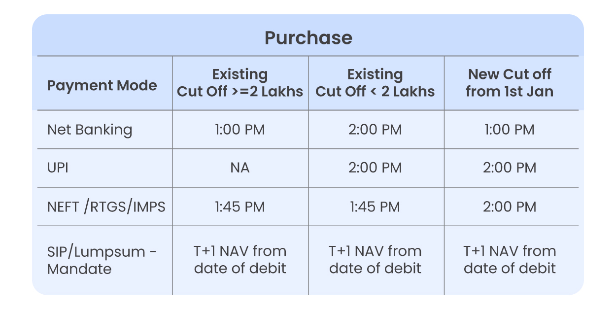 New cut off timings for purchases: