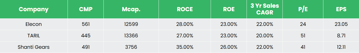 Compared to its listed peers, Elecon appears undervalued relative to its revenue-generating potential and strong financial performance.