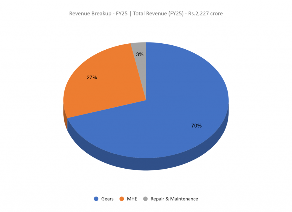 - Q2FY26 – In Q2FY26, Elecon reported revenue of Rs.578 crore, reflecting a 14% YoY growth from Rs.508 crore in Q2FY25, supported by healthy performance across divisions. The gear division grew 9% YoY, while the MHE segment expanded 33% YoY, driven by strong order execution. A timing gap between order intake and execution temporarily impacted revenue recognition during the quarter. Operating profit rose 13% YoY to Rs.126 crore (vs. Rs.112 crore in Q2FY25), while net profit remained steady at Rs.88 crore.