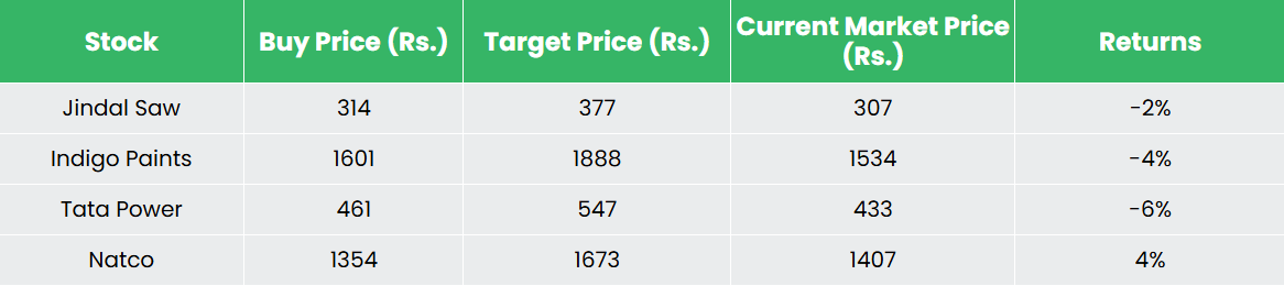 Recap of our previous recommendations (As on 08 November 2024)