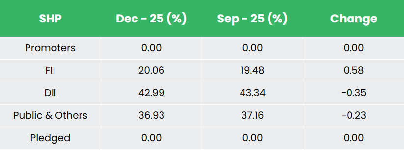 - Financial Performance – The 3-year revenue and net profit CAGR stands at 18% and 23% respectively between FY23-25. The company has a debt-to-equity ratio of 1.32, and the 3-year average ROE and ROCE are around 14% and 13% for FY23-25 period.