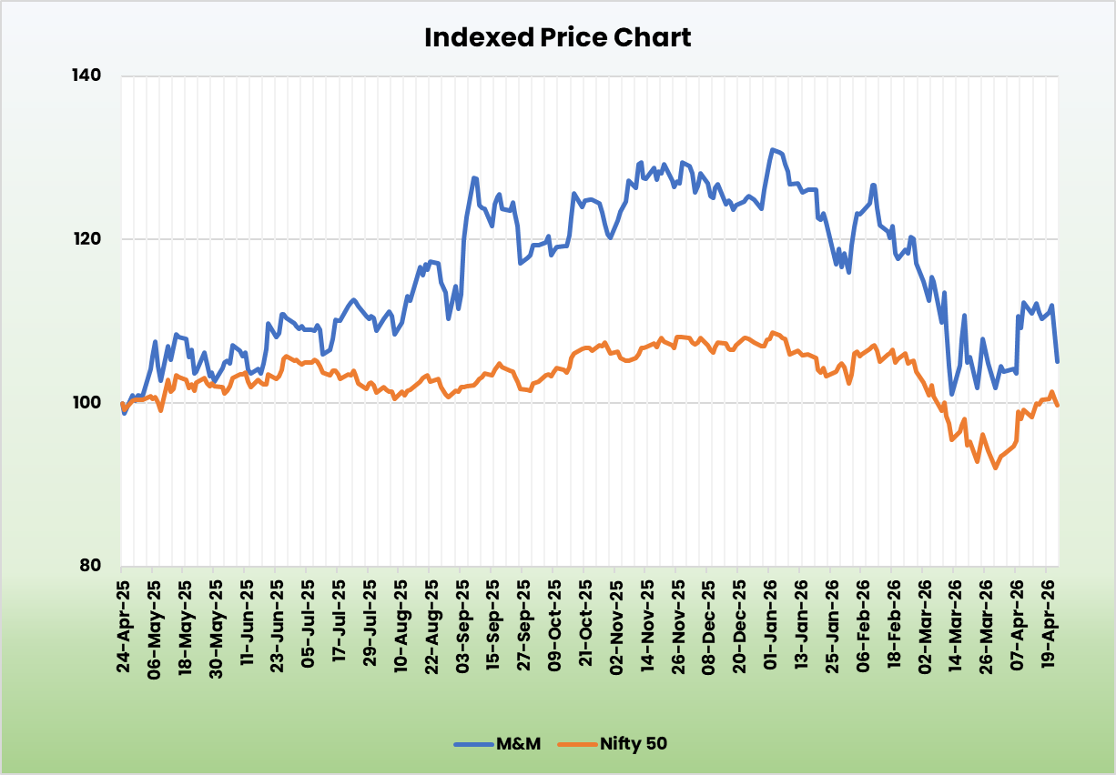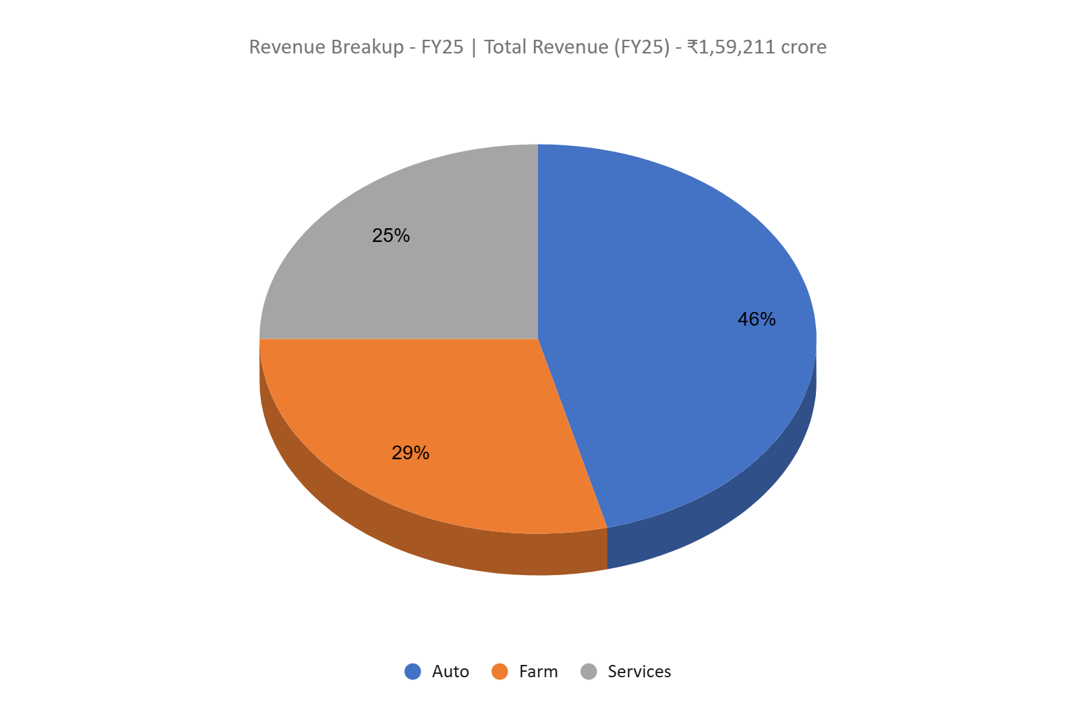 Mahindra & Mahindra Ltd., incorporated in 1945 and headquartered in Mumbai, is the flagship company of the Mahindra Group, a federated conglomerate with business presence across 100+ countries. The Company manufactures a diversified portfolio of SUVs, pickups, commercial vehicles, tractors, farm machinery, and electric three-wheelers across 24 plants in India, organised under three core portfolios – Automotive, Farm Equipment, and Services. The Company is India’s #1 SUV player by revenue market share (24.1% in Q3 FY26), #1 in LCV <3.5T (51.9%), the world’s largest tractor company by volume, and market leader in electric three-wheelers. Key brands include Thar, Scorpio, XUV 3XO, XUV 7XO, Bolero, BE 6, XEV 9e, XEV 9S, and Swaraj tractors, complemented by listed subsidiaries Tech Mahindra, Mahindra Finance, Mahindra Lifespaces, Mahindra Logistics, and Mahindra Holidays.
