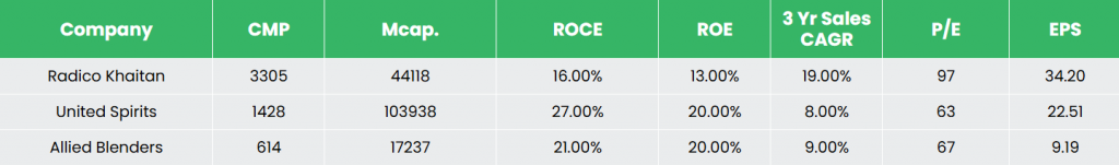 Competitors – United Spirits Ltd, Allied Blenders & Distillers Ltd, etc.