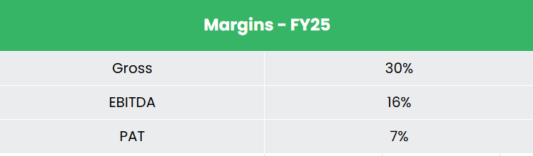 - FY25 – During FY25, the company generated revenue of Rs.4,320 crore, an increase of 37% compared to the FY24 revenue. EBITDA was recorded at Rs.682 crore, up by 114% YoY. The net profit grew by 850% to Rs.304 crore.