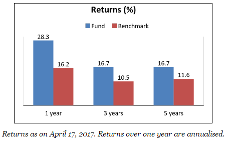 It is instead playing infrastructure through stocks such as L&T, Ashoka Buildcon, and Tata Steel, apart from energy stocks such as NTPC, Power Grid Corp., Tata Power, petroleum, and metal stocks. In fact, energy and metals featured heavily in the fund’s portfolio back from 2014 itself. While this worked well in 2014, the 2015 period saw the sectors slump. The massive rally in 2016 in these sectors propelled the fund’s stellar returns.