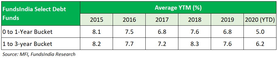 The YTMs of debt funds have been gradually coming down over the last few years.