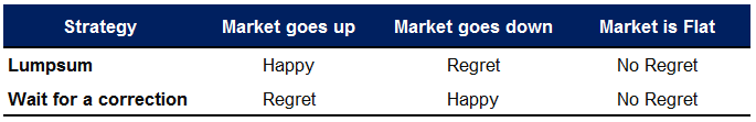 Now since we don’t know whether markets will go up or down in the near term, both choices have one scenario where we will regret.