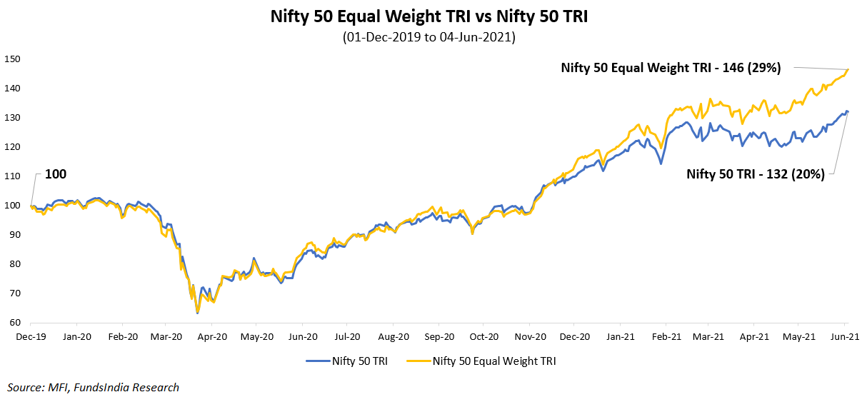 Let us check for Nifty 50 vs Nifty 50 equal weight.