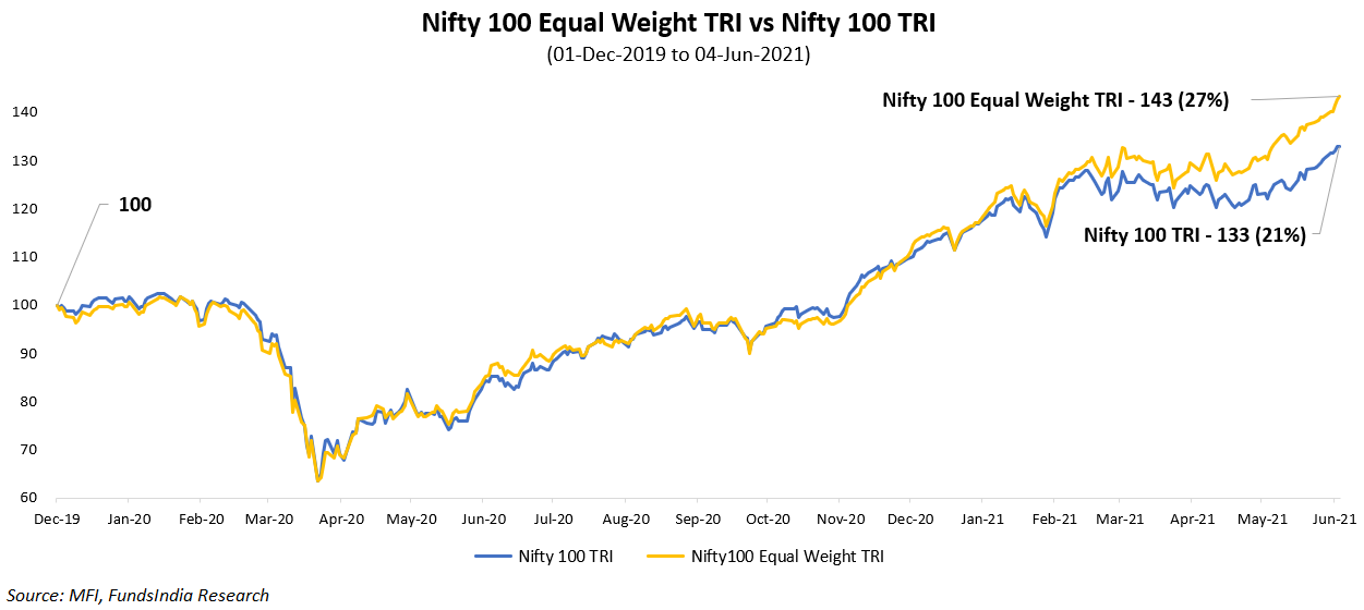 Let us check for Nifty 100 vs Nifty 100 equal weight.
