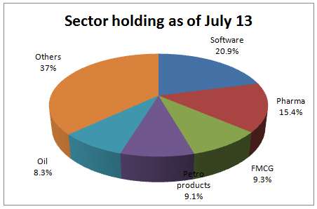And secondly if you see, all the large/midcap based funds historically had a high around 2011 and they have been declining since Jan’2013 where as this fund’s 52wk high is today. This got me totally surprised. Is it that banking is doing bad & this fund is completely void of banking the only reason for it’s good performance at present?