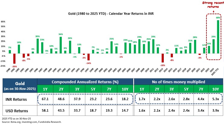 In just the last one year, gold has gained ~67% (as of Nov-25).
