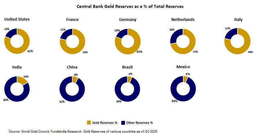 Central banks hold a major chunk of the world’s gold, giving them a strong influence on gold prices. Even small changes in their buying or selling can move gold prices sharply.