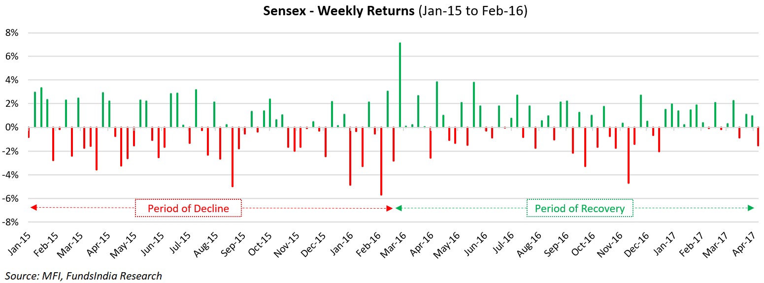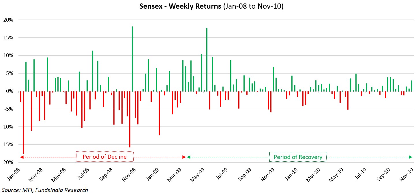 While losses till date are still notional, the moment we sell, they become actual losses. To offset a sharp decline, historically equity markets have always provided a sharp recovery in the future.