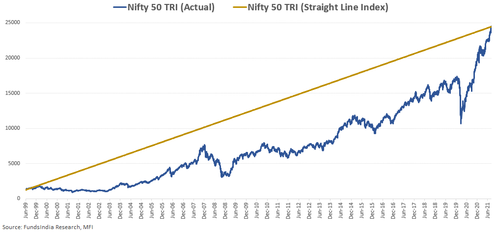 With a constant return trajectory, Nifty 50 TRI offered a CAGR of 14.3% since inception!
