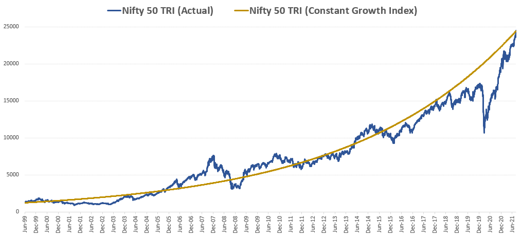 The woodcutter’s wish came true and as a result, the Nifty 50 TRI grew as a straight line exclusively for him.