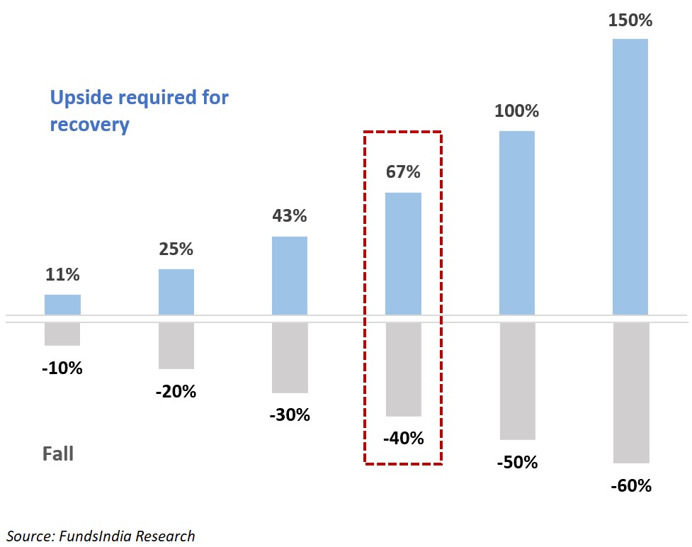 3. For a 40% fall, how much upside is required to recover the entire decline?