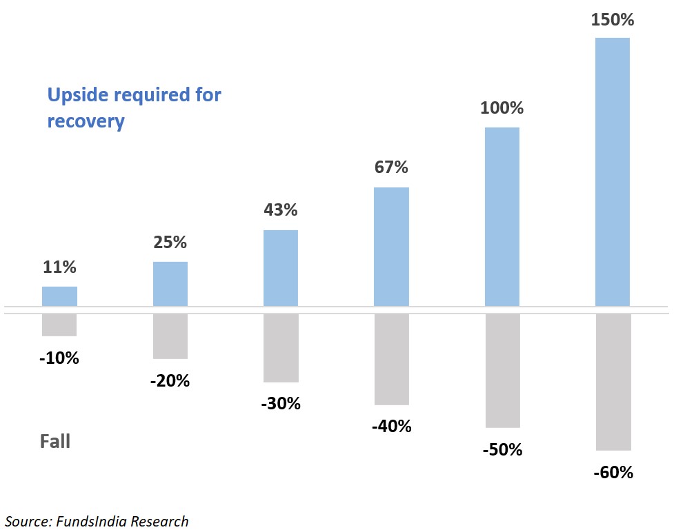 Every percentage loss requires an even larger percentage gain to recover the loss.