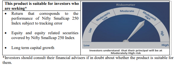 Motilal Oswal Nifty Smallcap 250 Index Fund is an open-ended scheme replicating/tracking Nifty Smallcap 250 Index. The scheme seeks an investment return that corresponds to the performance of the Nifty Smallcap 250 Index subject to tracking error. However, there can be no assurance or guarantee that the investment objective of the scheme would be achieved.