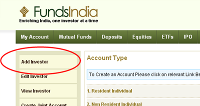 Adding an investor account proceeds along the same line as creating a new investor account in FundsIndia. Once an active FundsIndia account has been created, an